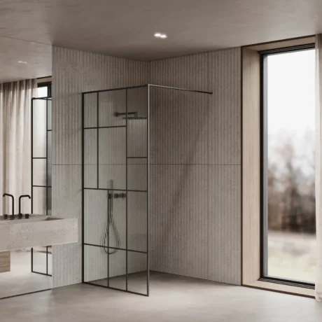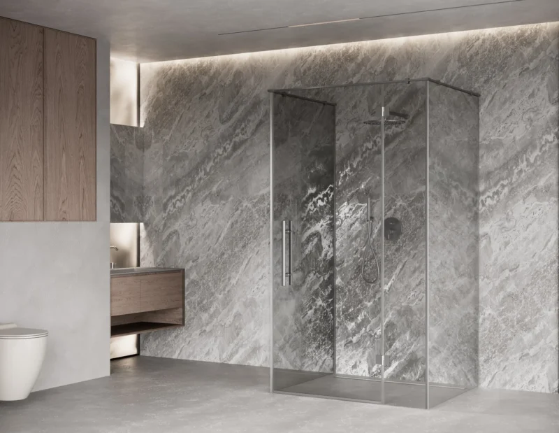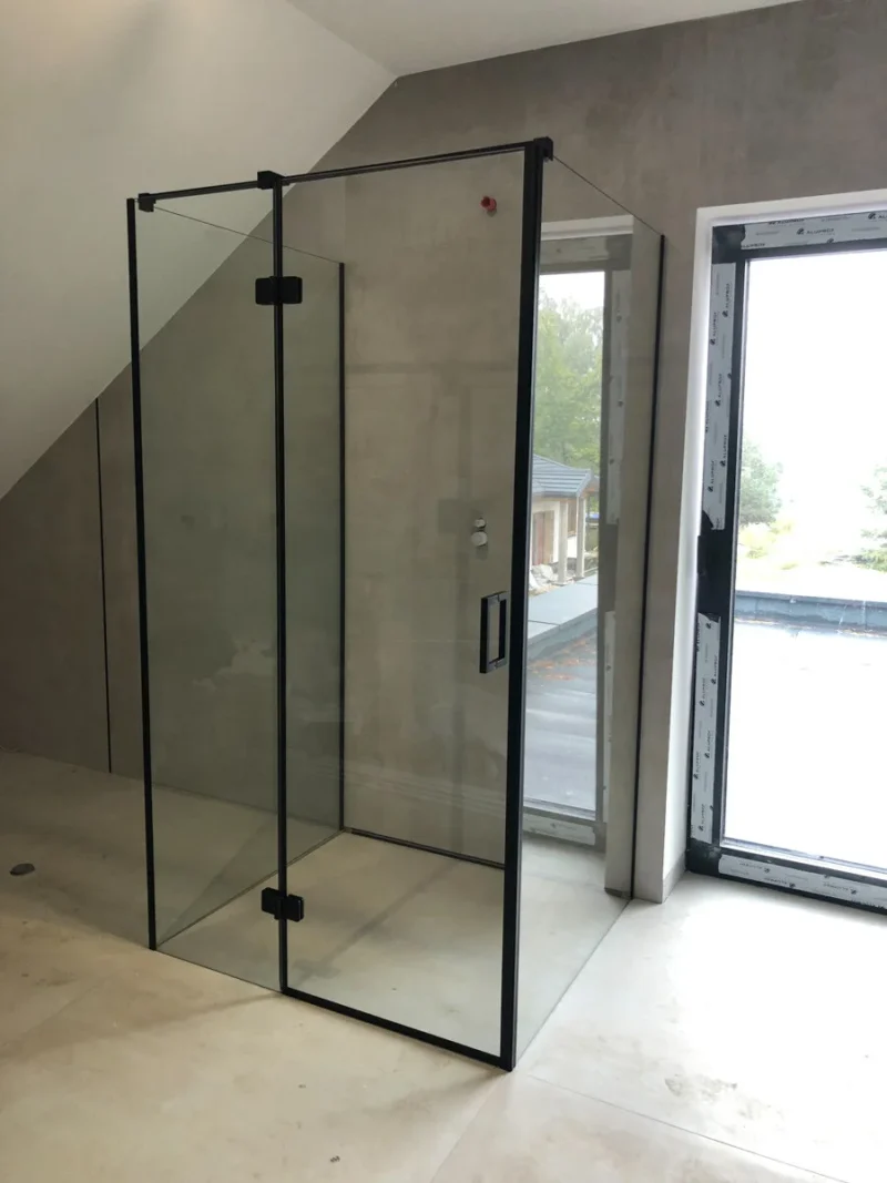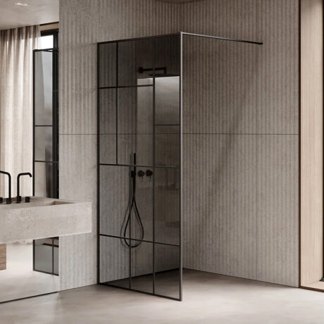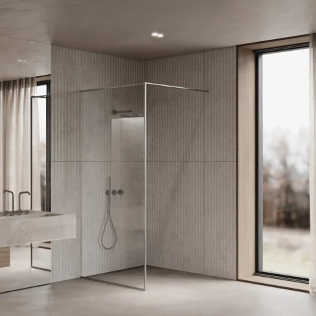 - Hochwertige Konstruktion: NOVEA besteht aus zwei Glaspaneelen, die für maximale Stabilität mit robusten Klammern an der Wand befestigt werden. Die Glastür ist elegant an der verstellbaren Glaswand mit einem hochwertigen Messingscharnier angebracht, was eine flexible Anpassung ermöglicht.