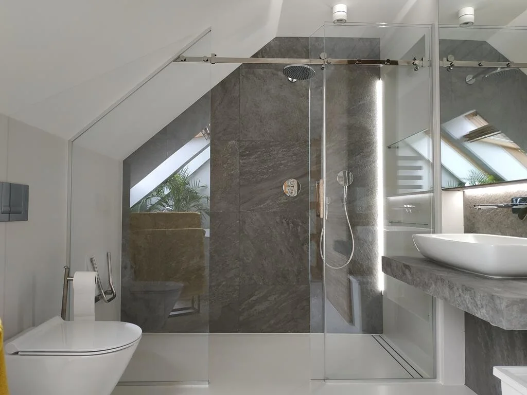 - Flexible Montageoptionen: Neben der Möglichkeit, die Verbindung zwischen Boden und Glas mit transparentem Silikon abzudichten, bietet OLEG auch die Option, das Glas mittels „U“-Profilen an Wand oder Boden zu montieren. Dies ermöglicht eine individuelle Anpassung an die Besonderheiten Ihres Badezimmers.