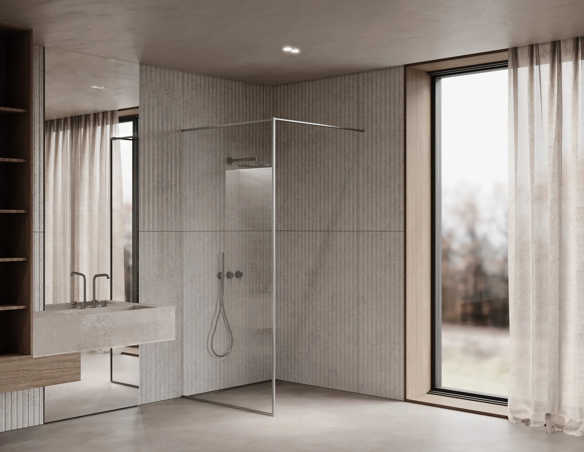 - Empfohlene Installation: Aus praktischen Gründen empfehlen wir, die Duschwand nicht bis zur Decke zu montieren. Auf Wunsch kann JONNY jedoch auch in dieser Ausführung angefertigt werden, um Ihren spezifischen Designvorstellungen zu entsprechen.