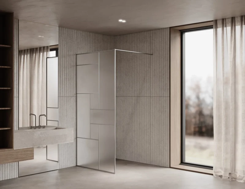 - Hochwertige Materialien: Eine robuste Glaswand, montiert mit einem U-Profil an der Wand und stabilisiert durch einen Messingstabilisator, verspricht Langlebigkeit und Stabilität. Die Verbindung zwischen Glaswand und Boden wird mit transparentem Silikon sorgfältig abgedichtet, um Wasseraustritt zu verhindern und die Reinigung zu erleichtern.