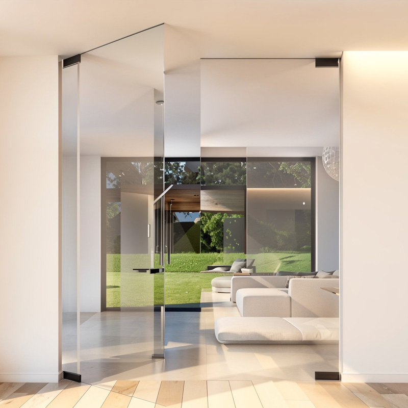 Wählen Sie unsere maßgefertigten Glasdrehtüren für eine stilvolle und funktionale Raumgestaltung, die moderne Eleganz und technische Innovation perfekt vereint.