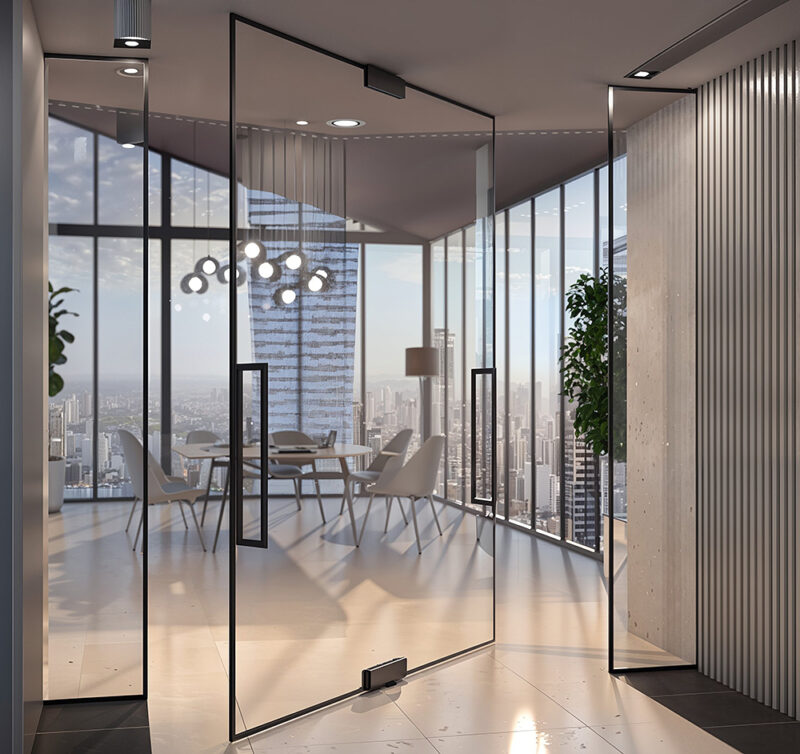- Ästhetik und Funktionalität: Unsere Glaswände mit Drehtüren sind nicht nur praktisch, um Räume zu teilen, sondern bieten auch eine visuell beeindruckende Ergänzung für jeden Innenraum.