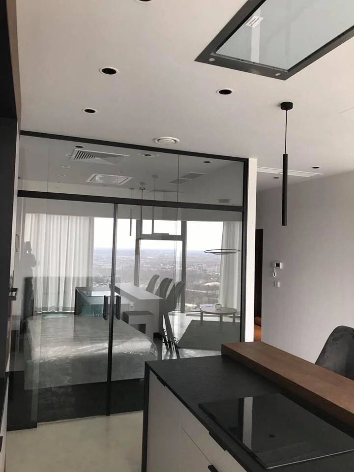 - Glastüren lassen natürliches Tageslicht in jeden Raum.
