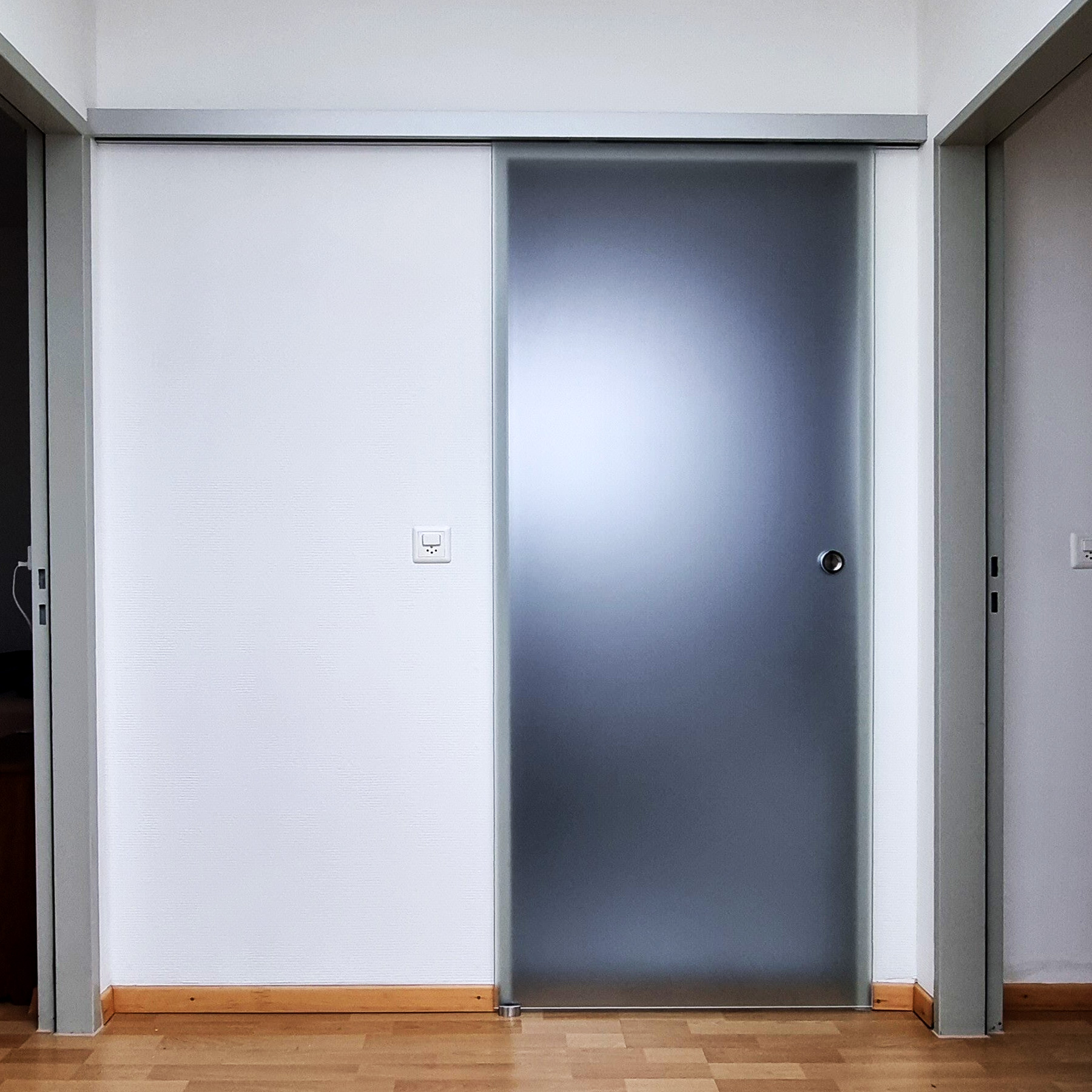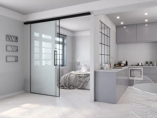 - Individuelle Lösungen: Abhängig von der Größe des Durchgangs bieten wir Einzelschiebetüren für Durchgänge bis zu 1500 mm. Für breitere Öffnungen ist eine Kombination mit einer festen Glaswand möglich, um Licht und Raum optimal zu nutzen.