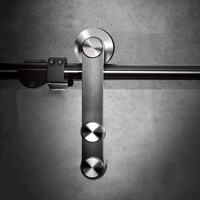 - Schiene: Edelstahl Rund 25mm, bis 3.000 mm lang, bei Verwendung von Einzeltüren