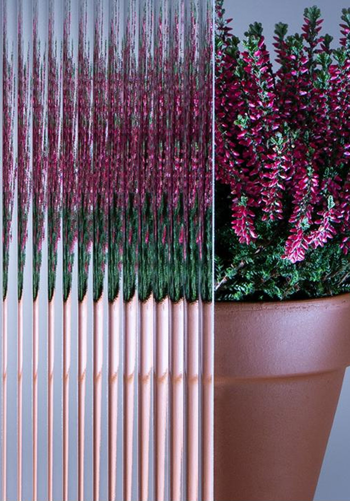 Gemustertes Glas ist durchscheinendes Glas. Sie kommt überall dort zum Einsatz, wo es auf dezenten Sichtschutz in Verbindung mit dezenter Streulichtwirkung ankommt.
