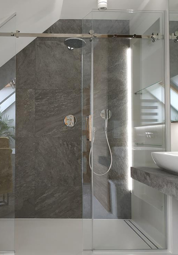 Wir laden Sie zum Bereich „Duschwände“ auf unserer Seite „Unsere Projekte“ ein. Hier präsentieren wir elegante und praktische Lösungen für Duschwände, die nicht nur die Funktionalität des Badezimmers erhöhen, sondern auch ein visueller Schmuck desselben sind. Jedes Projekt zeugt von unserem Engagement, ästhetische und langlebige Lösungen anzubieten, die auf die individuellen Bedürfnisse und Vorlieben zugeschnitten sind. Entdecken Sie, wie Duschwände Ihren Badezimmerbereich verwandeln können.