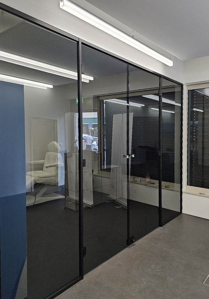 Willkommen im Bereich „Glastüren“ unserer Galerie „Unsere Projekte“. Hier finden Sie eine Auswahl unserer Realisierungen, die zeigen, wie Glastüren jeden Raum verwandeln können, indem sie ihm Leichtigkeit, Eleganz und einen modernen Charakter verleihen. Unsere Glastürprojekte sind auf verschiedene Bedürfnisse und Ästhetiken abgestimmt und bieten nicht nur Funktionalität, sondern auch einen einzigartigen Stil. Lassen Sie sich inspirieren.